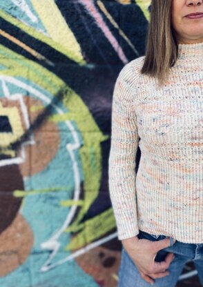 The Sammas sweater is worked top down in the round with snug sitting raglan increases and a short turtle neck. Starting off with the double folded turtle neck, short rows are then used to raise the back, while working the first raglan increases. The sleeves and body are worked separately with slits placed on both sides to achieve a looser fit around the hip. The entire sweater is worked in a easy to remember twisted 1x1 ribbing based pattern, however it can be changed to a normal 1x1 ribbing. The sleeves are just ending above wrists and are worked in a slightly adapted pattern from the body.