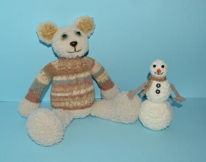 Sammy And Snowy are the cutest little friends. Sammy is a sweet teddy bear wearing a cable jumper. Snowy is his little snowman friend, complete with a scarf and buttons!