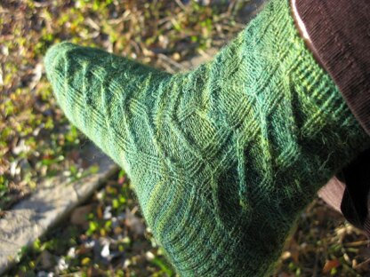 While hobbits do not wear socks, I believe if they did that Sam would knit them. They are objects like himself, seemingly humble, ordinary, and workaday, and for all that essential. A well-made and perfectly fitting sock, like a good friend, is a comfort beyond the luxuries of kings. In deference to Samwise's love of plants and growing things, this sock has leaf motifs which lean masculine, suitable for comfortable days at home or simply walking into Mordor.