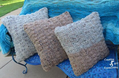 - Close off this pillowcase with your choice of ribbon, buttons or magnetic snaps. I used Red Heart Super Saver in Aran Fleck and Buff Fleck.
