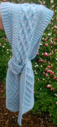 Sand Tracks is a straight scarf knit with a central Asymmetrical cable and textured side panels.