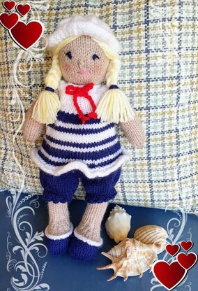 Sandy is part of my 'Dolly Days Out' Collection of knitted dolls. She is dressed in her Victorian bathing belle costume complete with mop hat. The hat and shoes are sewn on. The outfit is removable