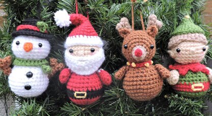 Christmas ornaments hold a special place in our hearts year after year, especially those we remember from childhood. Work up these sweet North Pole characters for your kids and grand kids to play with and remember for years! Santa, Rudolph, Frosty, and the Elf are the perfect, handmade addition for your tree (or maybe a kids' tree). Children love these familiar faces and can enjoy decorating the tree since they aren't breakable. These Crochet Christmas Ornaments are my original amigurumi design. Your PDF purchase includes written instructions with a photo tutorial. You will receive directions for crocheting all four characters - Santa, Rudolph, Frosty, and the Elf. You'll need the yarn colors pictured (worsted weight), a size E crochet hook, safety eyes, a yarn needle, stuffing, and an intermediate crochet skill level. The finished ornaments are about 4" tall.