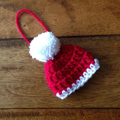 This pattern is to make a Santa hat decoration to hang on your Christmas tree.
