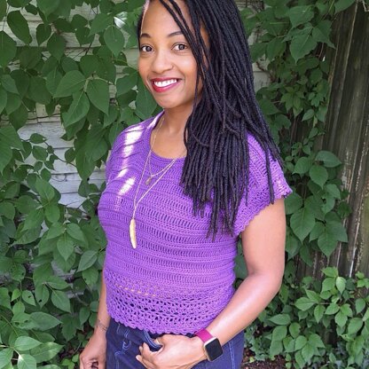 Crop your tee or make it extra long, it’s up to you! This size-inclusive top is made with fingering (1) or a light sport (2) weight yarn from the top down, allowing you to try it on at multiple stages and stop at the length you like best.