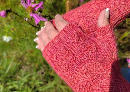 Due to the elastic nature of the ribbing these mitts will look small on the needles and when not worn but will stretch to fit a variety of hand sizes.