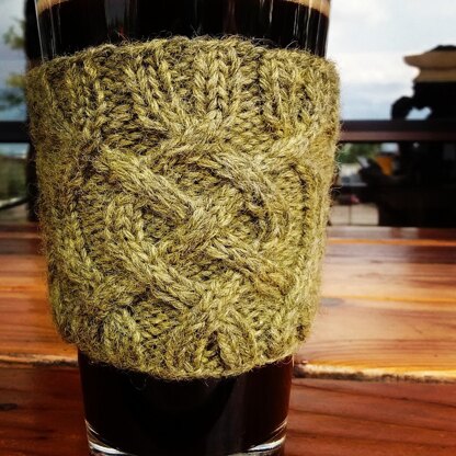 This is knit in the round from the top down. It is an intermediate level pattern due to the cabling. The pattern includes knits, purls, and cabling. Both written instructions and a cable knitting chart are included in the pattern. If you would like to make a taller cup sleeve just do a second repeat of the Saxon Cable Panel. The pattern has been tech edited and test knit.