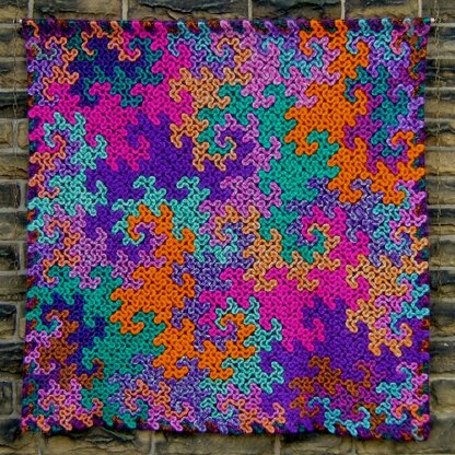 The shapes in this afghan are called Dragon Curves. You can see them in several different sizes as they fit together in magical ways. Go to the Woolly Thoughts web site if you want to know more about them.