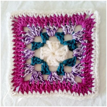 This is a very easy pattern that looks oh so pretty!  Starting with a cross in the centre rather than a full circle, makes all the difference.  Great for beginners, and for those who've been crocheting for a while and have the hang of these squares, you'll find this quick to hook up.