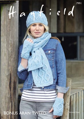 Scarf, Hat and Wrist Warmers in Hayfield Bonus Aran Tweed with Wool - 7991 - Downloadable PDF