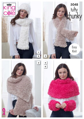 Scarf, Wrap, Thread Through Scarf, Shoulder Cover, Hat & Wrist Warmers in King Cole Tufty Chunky - 5048 - Downloadable PDF
