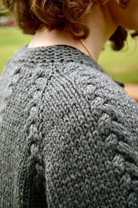 This cardigan is a top-down raglan with a twist. Instead of the typical plain stitches between the raglan increases, I’ve put in braided cables. In fact, as you can see in the photos, those braids are all over this cardigan! And with the garter ridges as accents, I think it’s a pretty unique design. The instructions are written so that you can customize the fit of your cardigan as you go.