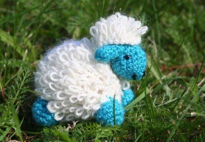 Die Schäfchen werden, wenn Sie mittelstarke Wolle (Lisa) verwenden, ca. 7 cm hoch und 9 cm lang. Ob Sie die kleinen Kerlchen lieber Weiß/Himmelblau oder Himmelblau/Weiß häkeln, bleibt Ihnen überlassen.