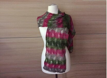 BASIC SKILLS NECESSARY knit, purl, skp, p2tog-b SIZING / FINISHED MEASUREMENTS onesize (200x25 cm) SUGGESTED YARN 400 meters of Lace weight COLORWAY green/ erica/ reed Supplies Needed 2 balls lace yarn, knitting needle 4.5