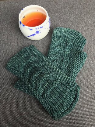 These mitts are inspired by my Scheelite hat, which I designed while spending a couple of spring weeks in the Eastern Sierras, rock climbing by Scheelite creek. Scheelite is one of the major ores of tungsten and the biggest source of tungsten in the US. Scheelite is quite soft and therefore not normally used in jewelry. These mitts are unique in their construction: they are worked sideways with an i-cord edge along the wrist and 2 di erent connection options. Choose between a simple lace or a cable.