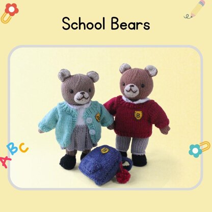The bears are identical in size and share the same body pattern. The legs, body, and head are knitted as one piece. The remaining components are knitted separately and attached to the body.