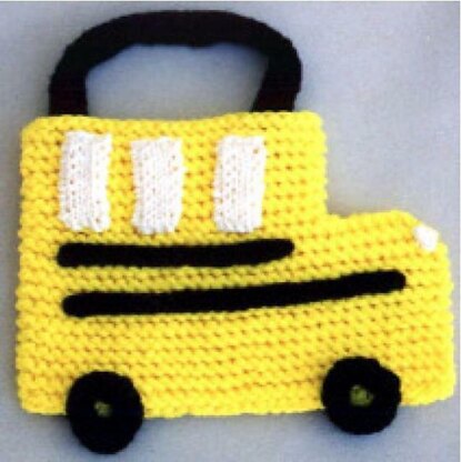 What fun, on your childs first day of school to take his or her own school bus tote! All the children will want one of these! Perfect size for small children to carry crayons, tablets, and more. This is a good toy tote to go to Grandmas with too! Knits up fast and easy, using worsted weight yarn, and knitting needles, US #10 ½. Sturdy, multiple strands of yarn keep it wearing longer. Finished size is about 11 inches long.