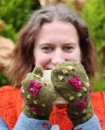 Sciurine is a fun mitten pattern, featuring fluffy-tailed squirrels, acorns, and oak leaves. It's not a difficult pattern, but the colourwork adds some interest, and the loop stitches for the tail make it that little bit more challenging to knit.