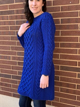 The Scottish Ale II is knit with worsted-weight yarn and knit on larger needles than the original Scottish Ale. It is tunic length, so it requires more drape. It is also shaped to be wider at the hips than at the bust. Not all women need that extra room at the hips, but many of us do. If you don’t, then you can use the bust numbers for your cast-on numbers, and you can eliminate the shaping.