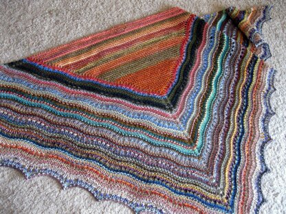 This pattern is an elegant way to use up scraps, samples or leftovers. It is written to take advantage of however much yarn you want to use, and can be made larger very easily by working more repeats.