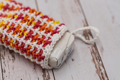 I always seem to have that random 0.5 oz ball left after a dishcloth project ... as a part of my destash mission, I wanted to use up every little bit. So, I put one of my favorite mosaic patterns to work, and viola, the scrubby stripes design. This is great for a washcloth or a soap sack for charity!