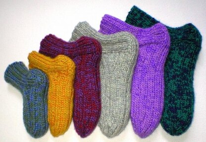 About the Design: Tufting (called shagging in the US) is a very old technique, used by hand knitters in New England & Canada, to make mittens warmer. It is ideally suited to slipper socks. The tufting adds a cushy, inner layer to the slipper sock, further protecting the feet from cold drafts. The socks are easy to knit and the tufting is fun and quick to do, after the socks are knit. What makes them scrumptious? The yarn - Lamb’s Pride Worsted, held double - is so soft and cozy. I’ve used 2 colors together in each sample, for a tweed effect. Do choose the two colors you like best!