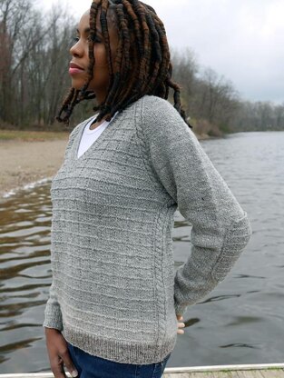 A lightweight, unisex, pullover in nine sizes (XS through L and 1X through 5X) to knit from the bottom up in the round—the perfect knitted sweatshirt for milder weather. The simple raglan design with a boyfriend fit, is composed with knit/purl patterning and narrow cabled detailing. The pattern includes both crew neck and v-neck options and may be finished with elbow patches if desired. With just a short bit of seaming at the underarms, this pullover is a speedy and relaxing traveler for experienced knitters and a great choice for adventurous beginners setting out on a first sweater project.