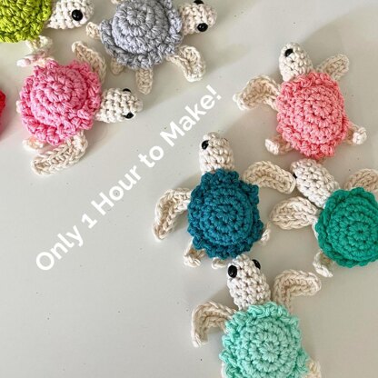 These adorable little crochet turtles are a big hit with everyone who sees them. Many people have asked to buy them. They take about an hour to make.