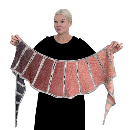 Choose your favourite contrasting colours, show off a special gradient skein, use up your treasured scraps with a new colour for each section, or simply stick with a single colour to create this impressive shawl that is addictive to knit and practical to wear. The Sea Urchin Shawl is worked end to end and is readily adapted to make smaller or larger sizes. Stitches are picked up along the top and bottom edge to add the eyelet border.