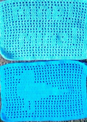 This is a filet crochet blanket made in seperate rectangles of 9" x 12". One motif for the Seagull and one motif for the Mine. It is a written pattern in UK terms. All you need is to know how to do trs and chs. I have put details for making a blanket of 36" x 45" Its made in DK yarn with 4mm Hook.