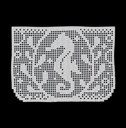 This filet crochet pattern can be wall-hanged or framed if desired. This is a charted filet crochet pattern. Basic knowledge of filet crochet is necessary to complete this project. A 1.5mm or 2mm crochet hook and lace-weight cotton yarn will work for this project.