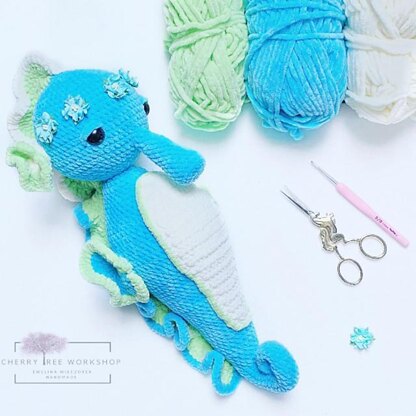 Pattern for carrying the Seahorse out with crochet method. Pattern in the form of PDF file. According to the pattern the mascot is made with Himalaya Dolphin Baby.