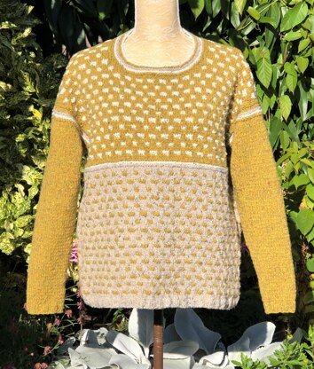 This attractive design gives a different slant to the ever popular block colour sweater. Neat little striped garter stitch edges add finish and clarity to the block effect. The fit is designed to be roomy and comfortable. If you wish to length the boxy shape, I recommend you do this at the end of the lower pattern section in order to keep the balance of the design perfect. Worked bottom up and with full written instructions.