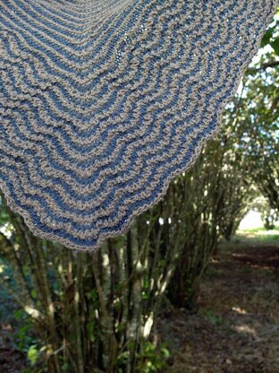 Seaswell is a stripy triangular shawl inspired by the sea. Its wave-patterned border is adapted from a Victorian stitch pattern known variously as ‘shell pattern’ or ‘fan pattern’. I have substituted simple kfb increases instead of yarn-overs for a less lacy look, and included double-decreases to sharpen the crests of the ‘waves’. Put this stitch together with narrow stripes, and you have a shawl that looks great on both sides.
