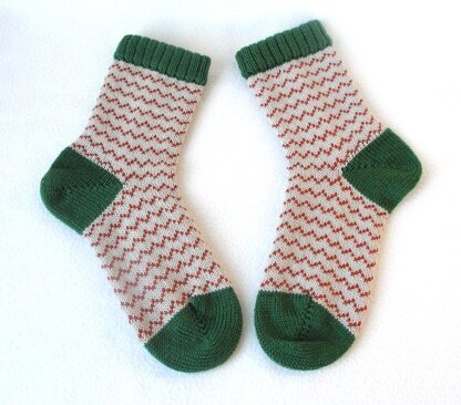 Comfy colorwork sock pattern for adults/teens. Seamless styled toes and heels. Quick and easy little accessory to coordinate with unisex outfits. A fun and useful way to use up small bits of yarn.