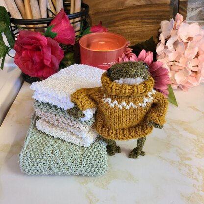First time making wash cloths and wanted to share the pattern I came up with. The set combines seed stitch and moss stitch to create a beautiful texture to the cotton wash cloths and towel. I made a companion scrubby yarn cloth of the same size as well