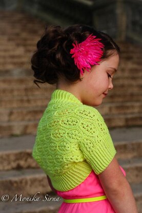 This shrug will have your girl covered whether she is going about her regular day attending a ballet class, tutu and ballet slippers optional, or if she is getting ready for a wedding party. The main feature is all over elegant Cabernet Cable, very modern but classic at the same time. The shrug is close fitting and is meant to gently hug upper back and shoulders.