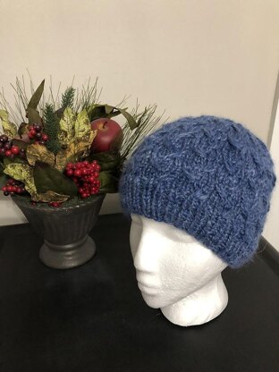 As spring starts to show it’s lovely blooms and colors, trees in this area begin to throw out a lot of seeds. The blowing wind carries all those seeds through the air like streaks. This cable pattern recreates that look of seeds going left and right across the hat. Since this is a bulkier yarn it also knits up quickly, making it great for a last minute gift.
