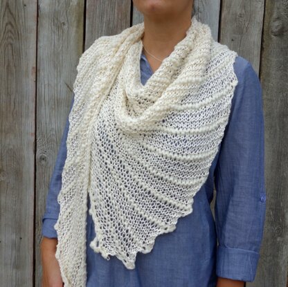 The striped look can be also achieved by using two different yarn colours that either complement or contrast each other. The Shawl is worked from one tip to the opposite side of the triangle, creating a slight asymmetric shape that is wearable and fun!