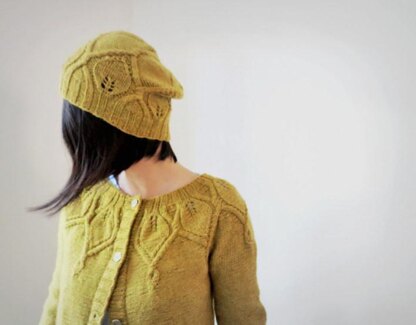 A Slouch Style Hat with leaf motifs and intertwined cables.