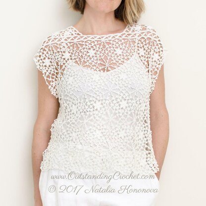 This romantic design is inspired by nature: bird-cherry tree blossom, first warm rays of sunshine in spring, wakening up the mother earth. Made out of joined as you go motifs it does not require any shaping or seams.