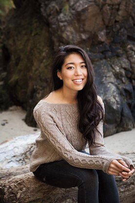 Highlighted with graceful, open cables, this delicate garment brings out the feminine side of cables. Whether your style tends chic or bohemian, a modern sillhouette and lyrical drape make Sestina a versatile layering piece or a great stand-alone wardrobe staple.