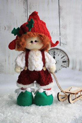 In addition, you can crochet Elf Doll as follow the different pattern. The size of ready Elf is 32 cm if using specified materials in the pattern. In the pattern, I indicate Kamtex Karakul Stretch yarn for making hair, but I use Pehorka Boucle (color 194 red) for making Elf hair in sleepwear (as you see in photo). I also drew freckles on his face with a brown marker.