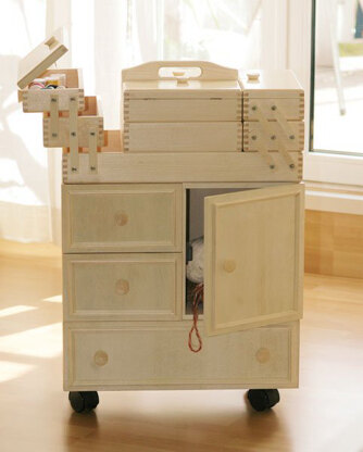 Made from beech wood, this ultimate cabinet for needlecraft features a three-tier cantilever style storage system, hinged lid, wheels for easy positioning, three drawers, one cupboard - all presented in this stylish cabinet.