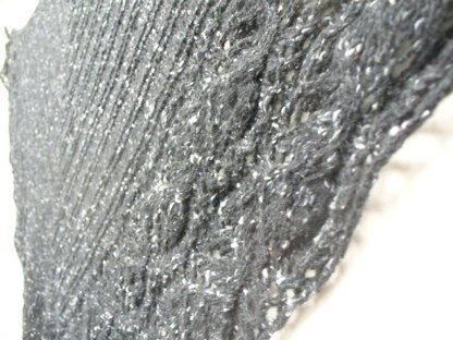 This large shawl has a main body pattern of simple stockinette with garter stitch ridges. The bottom lace border is worked side to side to bind of the body of the shawl, thus leaving very few stitches to actually bind off when finished.