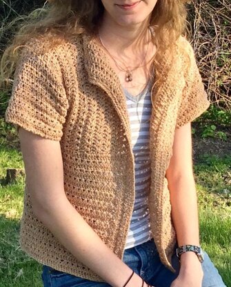 The cardigan can be made using any weight yarn to any size - I suggest DK yarn, which is what I used. You do not have to match my gauge!