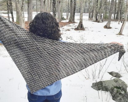 Knit in simple garter stitch, one color is carried up over the other on the front while the opposite happens on the back, creating a completely reversible fabric on this cozy shawl. Choose two similar hues for a subtle shadow effect as shown, or two contrasting colors for a bolder look.