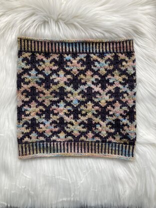 The matching cowl to the Shadow Wielder Hat features the same beautiful motif and corrugated ribbing. Written for both worsted and DK weight yarns.
