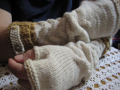 Shake the Barley fingerless arm warmers were designed to compliment the hat of the same name. They are long, stretching up to the elbows, and knit at a large gauge to allow for a comfortable relaxed fit.