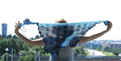 Shallow Waters is a lacy shawl with increases incorporated into the motifs. Wider than a traditional triangle, it holds its place on your shoulders securely and beautifully. The shawl can be enlarged by knitting additional repeats but remember that a surprising amount of yarn is required for the edge charts. The pattern is charted, wrong side rows are all purls.